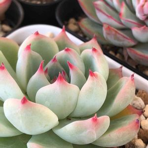 リエール苗のキャミソール✨ 夏に傷んで今もキズキズですが、 だいぶ真ん中から復活〜🥰 葉のぴらっとした揺れ感が好き〜💕 この子って高砂の翁みたくデカくなる子❓