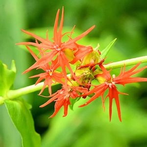 エンビセンノウです。 自然大好き派😘、兼園芸もやっています派です。暑さに負けずまだ次々と開花しています。ただ、少しずつ花は小さくなって来ました。写真は水遣り直後なので花に水が付着しています。高山植物は芽生えの当年は咲かない場合が多いのですが、この花はしっかり咲くので意外でした。花弁がツバメの尻尾のように長く伸びるのは小さな花を大きく見せて虫を呼び寄せるためだと思われますが、蝶🦋が来ているのは見たことがありません。ただ、種は受粉して結実しています。