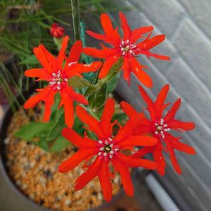 エンビセンノウです。 自然大好き派😘、兼園芸もやっています派です😅。 今日の花は燕尾仙翁です。花弁の先端がピッと伸びていてこれをツバメの尾に見立てた名前のようです。これは我が家の鉢植えで今季初の開花です♪😊。色は他のセンノウ属と同様に濃い朱色です。いつか自然界で会ってみたいと思います😊🤗。