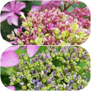 今年の土壌変化の結果 ピートモスを入れたてまりてまりと万華鏡 上手く写真の色が出せないがこの当たりが限度かな? 植木鉢の上から少しずつ混ぜただけなので植え替えて全体に混ぜればもう少し理想の色になるのかも?