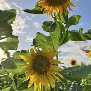 今日は『ひまわり』 家の辺りでは毎年🌻のイベントがあり、沢山🌻が咲きます 今年はイベントまでまだ2週間程先なのですが、もうすでに結構な数の🌻が咲いています 時期をずらして畑に植えてあるのでまだ徐々に咲きますが、イベントの時に終わりに近づいていないか心配になります 帰省中の息子と🌻ひと足お先に見てきました🥵