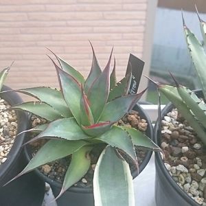 アガベ ブルーグロー 曇りでも、この紅いエッジが目立ちます😀🌼