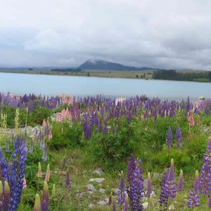 世界の植物フォトコンテスト。投稿④ 8月22日投稿の時と同じく、友達4人で行ったニュージーランドの花、ルピナスとテカポ湖。 この写真では、テカポ湖の色が出ていませんが、とっても綺麗なミルキーブルーの湖。 私達は11月に旅行したので、丁度見頃でした。 こちら手前岸辺丘に「善き羊飼いの教会」があり、とても素敵な場所でした。