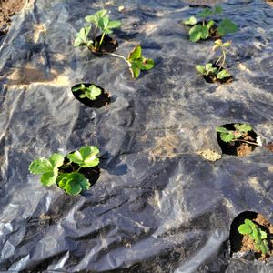①白いちご🤍明日収穫できそう♡ 赤い🍓も明日食べれそうです٩(ˊᗜˋ*)و ②インカのめざめ(ジャガイモ) ちょっと綺麗な色の花じゃん💜 ③べにはるか(さつまいも) 根っこが出てきたみたいだ