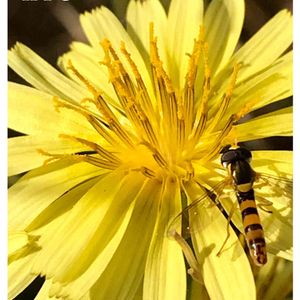 10月21日 晴れ 今日は田んぼの収穫も終わり 雑草の草刈りに草焼きをしています。 タンポポもどきに小さな🐝が😊
