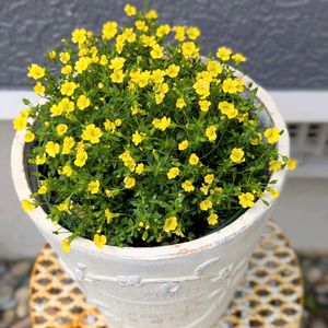 サカタのタネさんの「メカルドニア イエロージュエル」 去年の夏にお迎えして、寄せ植えの脇役として育てていましたが、今では他の苗が枯れてしまい、お一人様に。 スリット鉢に植えていますが、白い鉢カバーに入れてみたら… あら、なんだかとっても素敵✨ この雰囲気、よく似合っていませんか? それにしても、花台にしてるコメリさんのメッシュスタンド錆び錆びですね~💦💦😰