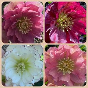 クリスマスローズ ダブル咲き ①庭の一回り小さいクリローのダブル咲きが、咲き始めたよ😆 ②横顔も…😍 ③県総合運動公園にあるグリーン💚のクリロー、此を見て💚2年前求めました🤭 ④同じ一角に有る原種シクラメン沢山咲いてた。 ⑤こんな感じで、クリローとシクラメンが咲いてます😄 大好きな場所