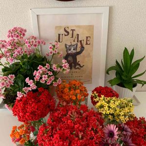 サンスベリア グリーン 一重咲きカランコエ イエロー 八重咲きカランコエ レッド、ピンク、オレンジ オステオスペルマム ピンク 痛んできたカランコエさんをカットして花瓶に。 鉢植えだと八重咲きさんが華やかに見えますが、切り花にすると一重咲きさんの方がふんわりと活けられます。 すでにこの中の切り花カランコエさんは発根してます…また増やすの?私💦