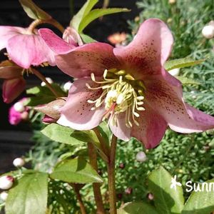 《クリスマスローズ》 以前に“ルーセピンク”と言う名前で購入しました。淡いピンク色の花弁に赤紫色のハッキリとしたスポットが入るのが特徴です😊💕。以前は“ルーセシリーズ”で販売されていたようですが、今はそれぞれに名前が付けられて販売されているようです✨🍀。 これも、3月中旬のpicです🙇♀️⤵︎。