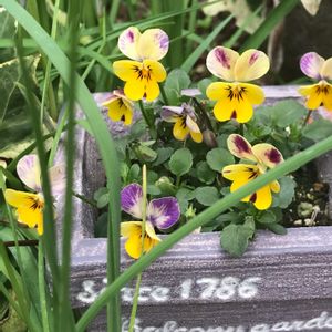 家主が枯れていない鉢から🌱をだし咲いてくれてるビオラとアリッサム。 みんな小さいけれど、優しい色合い✨💞で可愛い寄せ植えになってます😊