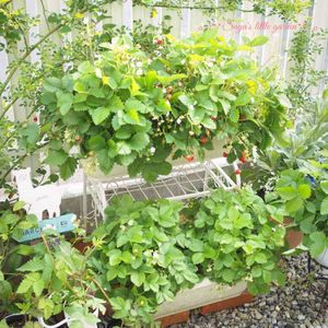 いちご狩り特設会場🍓 親株からこぼれ種が育ったので計5株で毎日収穫を楽しんでます🍀 今年も庭のワイルドストロベリー、ジューンベリー、ボイセンベリーからジャムが作れるといいな❤