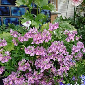 静かな雨の朝です☔ ラックスの鉢に種こぼれのネメシアがもりもりいい感じ〜♬