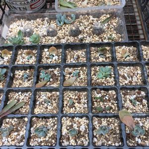 煮えた葉挿し😭一昨日くらいに息子を抱っこで昼寝させてたら日陰に移動し忘れて煮えてしまいました。大丈夫そうなのもあるけど白牡丹なんか変色してるしシワシワだしダメなんだろうなぁ😭 けど可哀想すぎて捨てられない💦根っこもチリチリになってたし、あと1ヶ月は暑いんだもんね。もう無理じゃん😭