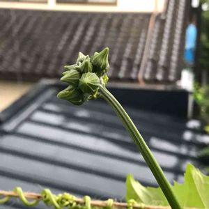 おはようございます。朝から小雨🌂、今日は降ったり止んだりの予報です。小学生の孫からもらったへちまの種からプランターで育ててます。20cm超になりました。そろそろ収穫かなぁ〜。へちまタワシ、種採り、へちま水出来るかなぁ〜 へちま水"いる"か相棒に聞いたら"そんなもの不要"だって!🥰😍😻😸🤗😊
