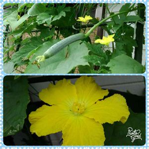 おはようございます。へちまの花と実。食用です。無事に育って欲しい。