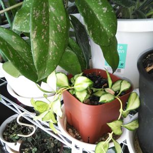 おはようございます🌞 ホヤはポチると断言した直後ですが、お店に売ってました❣️ 探してる時には全然見つからないのにーっ😤 でもまぁ、うちに来たんだから大満足🥳 みーんな、緑が深くてキレイです。 葉っぱ、水垢に見えるけど模様です✌🏻 斑入りって言うほど斑っぽくはないけど、今後ついてしまう水垢も目立たないやろうからラッキー🙌🏻 みんな大きくな〜れ✨✨ ついでにお花も見せてくださいっ👏🏻