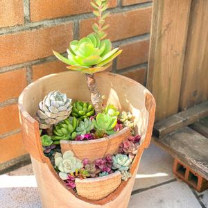 割れた鉢に寄せ植え✨ まだ不安定で😅 ポロポロセダムが落ちちゃう🤣