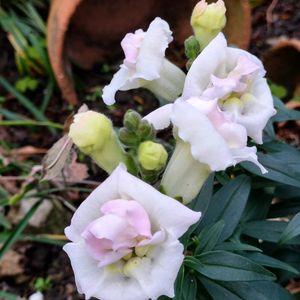 💗キンギョソウ💗 八重咲きのは、キンギョぽくないけど 可愛さマックス💕 日当たり悪いけど いじけずに咲いてくれてます🤩 割れた素焼きの植木鉢を 後ろに置いてます。 特に寒い時期は素焼き鉢は割れがちですね。 ヒビに入ってる水分が凍って膨張して割れる感じ? 今まで何個も割れました が 砕くのもめんどくさいので こうやって置いてます😆
