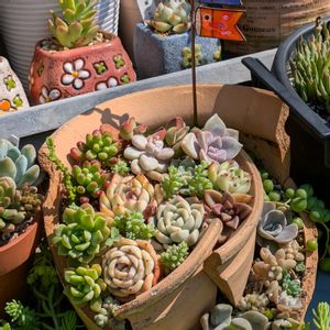割れ鉢、どうする?🌻🐸🌵 割れ鉢の割れ方が今ひとつ。 穴が真っ二つで さらに割れて。 寄せ植え? ミニチュアガーデン? どちらもいいアイデア💡が 思い付かず。 植えていないけど、 いいのかな😌