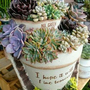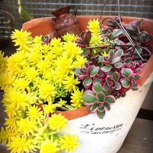 割れ鉢に多肉ちゃん寄せ植えしました😊 チマチマ寄せ植えセンス無しすぎです笑 鉢が可愛い💕ので良いとして下さい笑