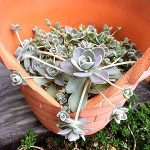 3月最後の投稿💕 昨日の心地よい小春日和🌤 今日は風の強い日🌬 4号の割れ鉢 植替えでもぎった子株を詰め込み🌱 ステキな鉢がカバーしてくれてて 大満足💖