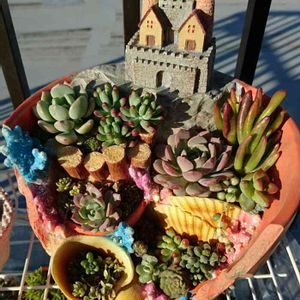 自分で割った素焼き鉢。 なかなか思うようには割れないけど…。 隠れ家的なイメージで寄せ植えしてみました。😆 落ち着いたら、セダムを剪定します。