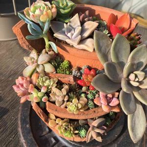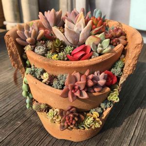義母さんとこの割れ鉢を仕立て直ししました♡ 土が少ない分、形が悪くなるので、セダムだらけにしました!! 強い子ばかり(* ॑꒳ ॑* )