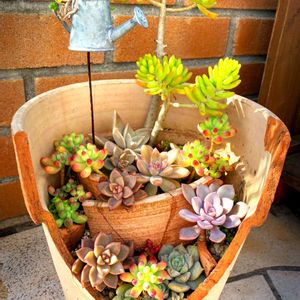 わーい🙌GS100post達成☆ 昨日、生産者さんのハウスにて割れ鉢寄せ植え を楽しんできました♥ 可愛いコをどんどん選んでいたらセダムを入れる隙間が無い程の、 ある意味贅沢な寄せ植えになっちゃいました✴️ 名前の分からないコ、 残念ながらこの写真には写らないコもいるし 指定範囲が広すぎて全部に名前を入れていくのは断念💦 あっ大好きなラウリンゼは上下に2つ入れちゃいました😀 大きくなるので、仕立て直す時には別鉢にお引越し予定💚 (ってか、私は大きくなるまでに☆しちゃったヒトです💦)