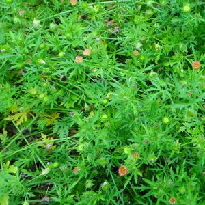追記:ちゅう。さんとゆうさんに、キクノハアオイだと教えていただきました!アオイの一種で帰化植物なんですね。ネットで花の写真を見ましたが、小さいけれど確かにアオイらしい花。多分、夕方だったので、花が閉じていて赤い点々に見えたのだと思われます。 —————- Modioa caroliniana アオイ科キクノハアオイ属 一年草 熱帯アメリカ原産。世界中に帰化し、日本では関東〜九州の空き地や道端で見られる。 ————— 【名前を教えて🙏】道端で、ふと赤い点々が目につきました。赤い点々は花??このヨモギに似た植物はなんでしょうか。分かる方教えて下さい。 当地は神奈川県西部です。