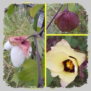 コットンボール☁️☁️☁️ お花はオクラの花似でした。🌼 綿の花🌼