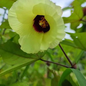 綿の お花ちゃんです。 今年は、2種類の、綿の種蒔きを、しました。 白綿 と 茶綿 です。苗が 混ざってしまったので、どちらのお花ちゃんか? わからなくなりました。 実が はじけた後の お楽しみ😍です。