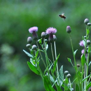 屈斜路湖畔の和琴半島にて。 蝦夷狐薊から飛び立つ蜜蜂。 *キク科アザミ属 *雌雄異株