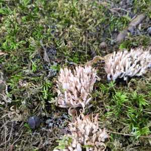 複数枚投稿に初チャレンジです❗️ ⬅️シロソウメンタケ(白素麺茸) *シロソウメンタケ科シロヒメホウキタケ属 発生時期は夏〜秋広葉樹林内や芝生上に群生する全体が白いキノコ! 高さは3〜12cm 地面から一直線に立つように生えています。 無味無臭で食用となるものの特に美味しい訳ではないそうです。 ☆ムーミンに登場する「ニョロニョロ」はこのシロソウメンタケでは無いかと言われているそうです! ➡️ムラサキホウキタケ(紫箒茸) *シロソウメンタケ科シロソウメンタケ属 すぐ近くに生えていました! 同じ科と属だったんですね♪ まるで山に珊瑚が生えたようで、美しい姿でした❣️ 暑かった夏の後一雨降ったらニョキニョキ顔を出していました❗️ 10月8日撮影