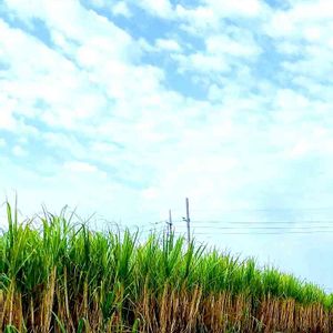 サトウキビのトラックが🚚連なっています。あと3箇所ぐらい待機所があり沢山トラックが列をなしています。 今日は少し風が強いです。工場の方から風が来ているので砂糖の甘い匂いがします。 香ばしいです。ローシュガー 三温糖?の匂いがします。