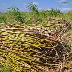 サトウキビの収穫 やっと半分終わった 1山約 450kg × 16山 約 7トン予定 セカンドハウスの畑にて 1月24日 撮影