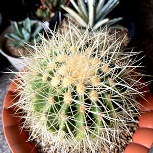ホームセンターで購入した金鯱さん🌵棘がキラキラまぶしいです✨ 涼しい店から連れて来たので、外に出していいものか悩んだ末、ライトをあてて室内管理中💡過保護でしょうか····😫