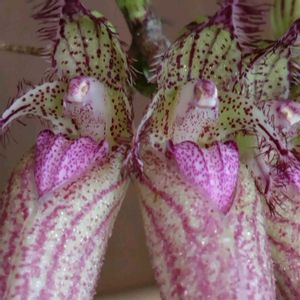 バルボフィラム サーモネウム ①今朝 ②昨日の夕方 なので 咲いた で良いのかな? はじめましての花はわかりにくい