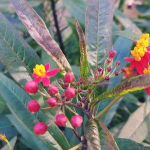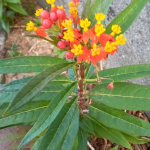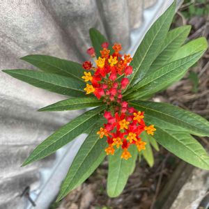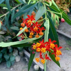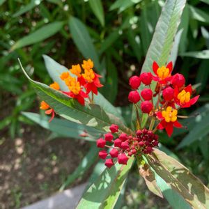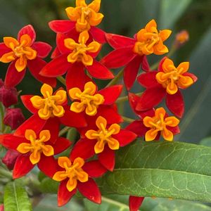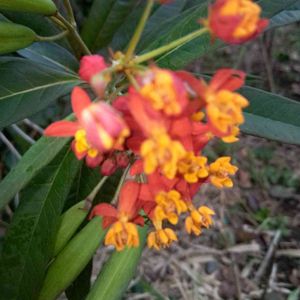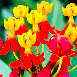 おはようございます🍀 赤❤️と黄色💛で、羽根つきの羽のような、ユニークな形をした花を咲かせています❤️💛🤗