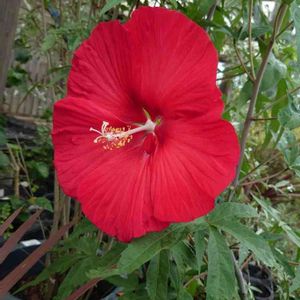 久々の投稿です。 7月に植えた『タイタンビカス』やっと咲きました。 1輪でもかなりの存在感‼️