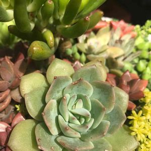 確か埼玉花園三軒巡り (道の駅、流通センター、グリーンセンター) で購入した、七福神さんだと思って狩った子 …赤すぎやしませんか? 混じってるのかなー。 エケベリアとしか書いてなかったけど紅葉する前は七福神かなーって。 素性はわかりませんがこの色味が好きだから良し👍