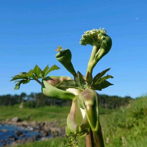 エゾノヨロイグサ (蝦夷の鎧草) セリ科 シシウド属 7~8月 1~2m 在来種 絶妙なタイミング(笑) 白鳥のようですね🤭 今、首を持ち上げようとしている袋状の部分は葉柄が膨らんだものです😆