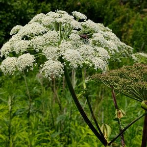 エゾノヨロイグサ (蝦夷鎧草) 🌿セリ科 シシウド属 *高さ1~2mの多年草 *茎の上部で枝分かれし、枝先の大きな複数形花序に、白い花を密につける *茎は細く紫色を帯びる 丈があるので低めを選んで撮りました☘️