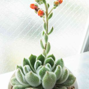 産毛ちゃんの中でもかなり大きめの子。 お花の蕾がオレンジでコロンとしていてなんだかかわいいです。 産毛びっしり。