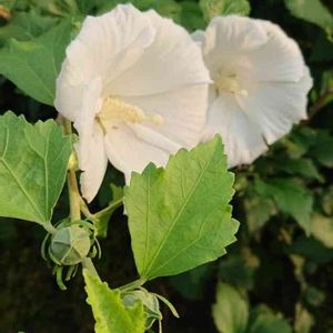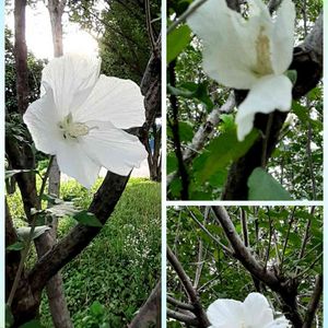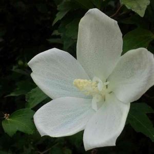 🌺真っ白なムクゲ 駅近の公園にて 遠目からも見えました 。:+ ゚ ゜゚ *♥*⠜+:。:+* ゚ ゜ 雨上がり、足下はぬかるんでいたけど綺麗さにひかれて…📲