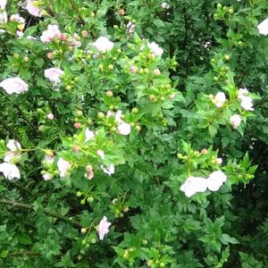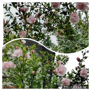 度々すみません💦 2階の窓から覗いたら、ムクゲの🌲のてっぺんの辺りに可愛らしいまぁるい蕾がいっぱい付いてたので💞