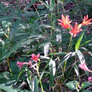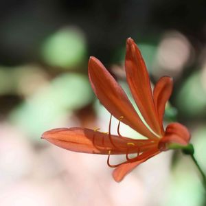 キツネノカミソリ(狐の剃刀)(ヒガンバナ科ヒガンバナ属)* 名前がおかしくて載せてみました オレンジ色の綺麗な花を見つけました 細長い葉の形がカミソリに似ていて 花色がキツネの色に似ていることから 山の中でキツネが使うカミソリなんだろう と言うことで名づけられたそうです 花言葉:妖艶 ねぇ 知っている わたしさあ あなたを わたしのとりこに させることなんて 簡単なんだから ちょっと濃いめの 化粧して ウインクしたら あなたは わたしにイチコロよ(﹡ˆ﹀ˆ﹡)♡