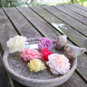 昨日雑貨屋さんで素敵なバードバスを見つけて買ってきました(^-^)かなり重たいです。この時期、日なただとすぐお花ダメになってしまうので、日除けの下の日陰のテーブルの上に置いてみました。ここだとダイニングからよく見えて嬉しいです✨2000円くらいで買えたので良いお買い物でした(˶' ᵕ ' ˶)
