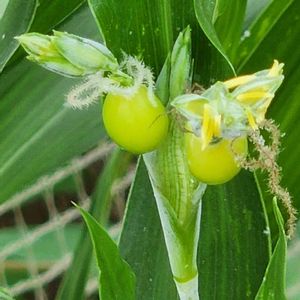 ジュズダマのお花💛💚 実の先から穂が出てます イネ科なんですね🌾 子どもの頃お手玉に入れたり糸で繋いで遊びました👧