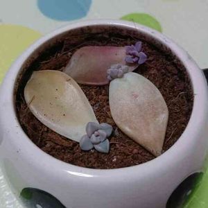 エケベリア属、 葉押しから芽が出てきました。 だけどこれからどんどん寒くなって来るので上手く育ってくれるかどうか心配(´Д`)。