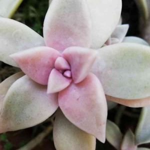 花屋さんで新しく入荷したみたいだったのでお迎え〜😊100円です(^_^*) 前にも名無しの同じような子picしてるんですが、ほんのりピンクに手が伸びちゃいました😅 やっぱり朧月かなぁ〜 見えませんが、お子ちゃま2個付いてます❣️